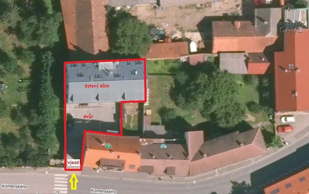 V blízkém okolí je kompletní občanská vybavenost. Lékárna 20 m., náměstí 100 m., pošta, lékaři, COOP do 200 metrů od domu, ZŠ 300 m., ČD stanice 500 m.