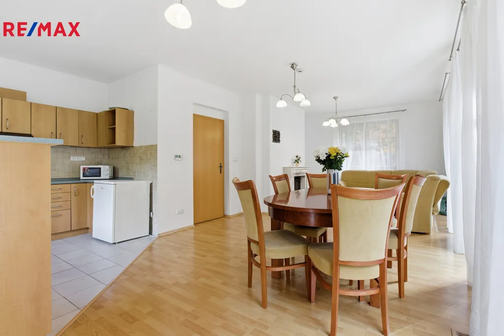 Při vstupu vás přivítá předsíň, ze které je vstup do všech místností. Dominantou přízemí je prostorný obývací pokoj propojený s kuchyní, ideální pro rodinná setkání i společenské události. Z obývacího pokoje je přímý vstup na terasu, která nabízí příjemné posezení s výhledem do zeleně. Dále se v přízemí nachází pokoj a velká koupelna s vanou a sprchovým koutem.