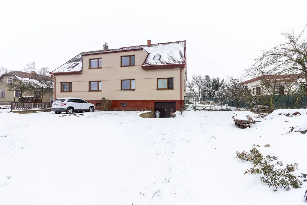 Prodej rodinného domu v obci Hostomice, KÚ Hostomice pod Brdy. Předmětem prodeje je polovina dvojdomu na vlastním pozemku se zahradou o celkové výměře 917 m². Dům prošel z větší části v roce 2025 velmi zdařilou rekonstrukcí. Elektřina v mědi, rozvody vody, odpad, okna, koupelna, WC, kuchyně v přízemí a kompletně celé 1. patro po rekonstrukci. Topení domu zajišťuje kotel na tuhá paliva s rozvodem do radiátorů, ohřev vody bojlerem. Plyn na hranici pozemku. Dům je celkově podsklepený, ve sklepě garáž, technická místnost, dílna, sklep na potraviny.