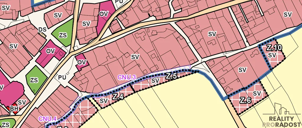Dle platného územního plánu je pozemek zařazen jako Smíšené obytné venkovské – SV .