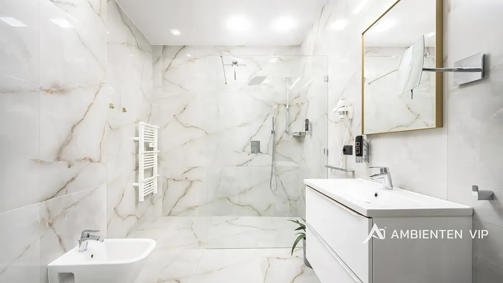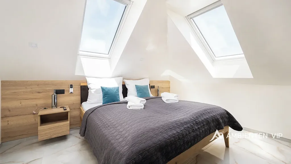 Každý apartmán disponuje plně vybavenou kuchyní, koupelnou, klimatizací a zatemňovacími venkovními žaluziemi. Všechny místnosti mají samostatný termostat pro regulaci teploty, vytápění je zajištěno teplovodním podlahovým topením a ohřev vody zajišťují elektrické bojlery (každá jednotka má vlastní se zásobníkem 125 L). Každý byt má své podružné měřidlo elektřiny i vody, nemovitost má jednu hlavní přípojku elektřiny a vody.
