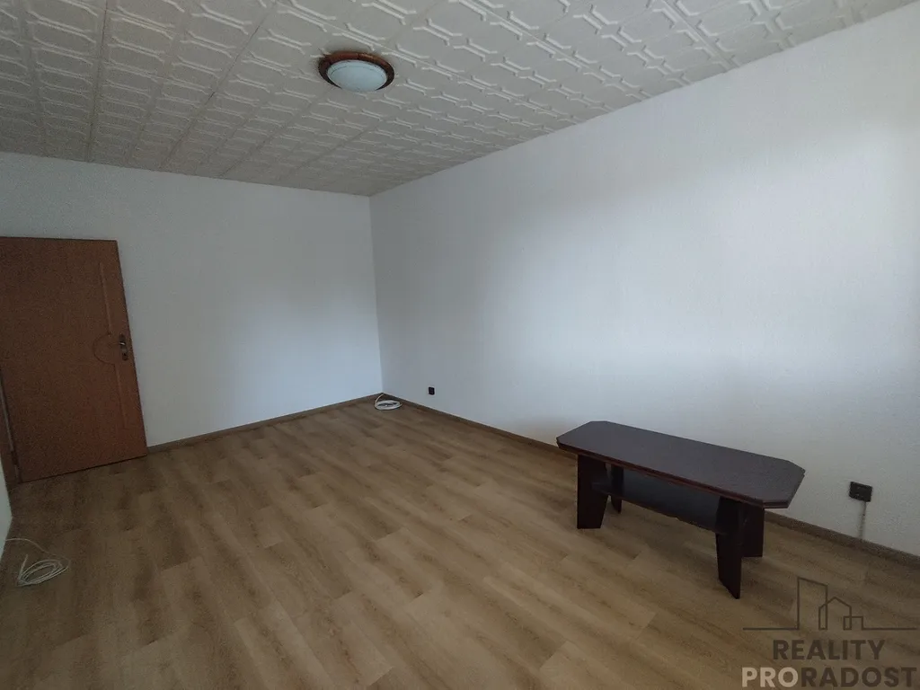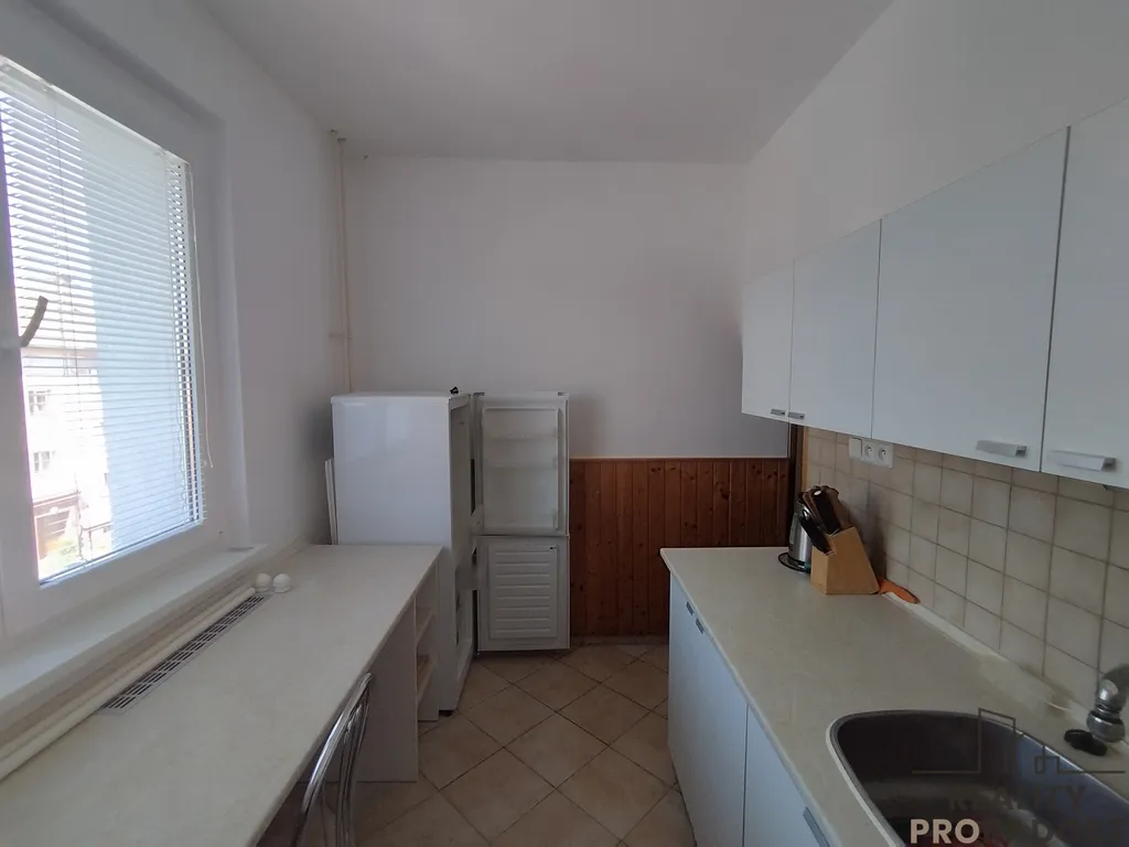 K dispozici chodba s vestavnou skříní, obývací pokoj s lodžií, dále samostatný pokoj s velkou skříní a kuchyň s lednicí, koupelna se sprchovým koutem a pračkou, samostatné WC, dále prostorný zděný sklep, kolárna. Byt je čistý, vymalovaný na bílo a pokoje mají novou podlahu. Lokalita a orientace do zeleně je velmi příjemné, klidná. Doporučuji.