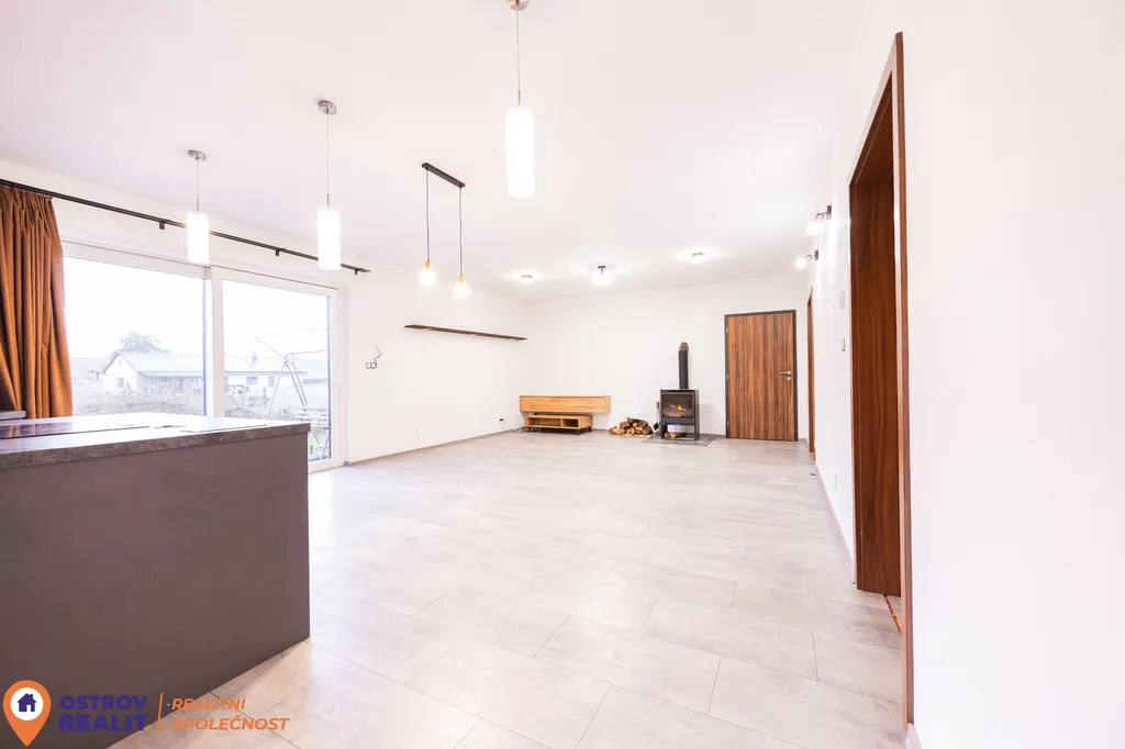 luxusní kuchyň s ostrůvkem, pokoj, koupelna, šatna, podlahové vytápění, plastová trojskla, elektrický kotel