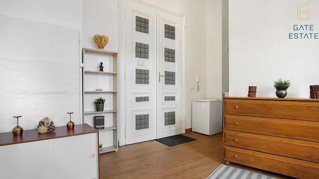 Byt je díky velkým oknům velmi světlý, má 5m vysoké stropy, což byt opticky ještě zvětšuje. Okna jsou směrována na jih a na východ. Byt se nabízí částečně zařízený. V bytě zůstává pračka a po domluvě s majitelem je možné přikoupit postel.