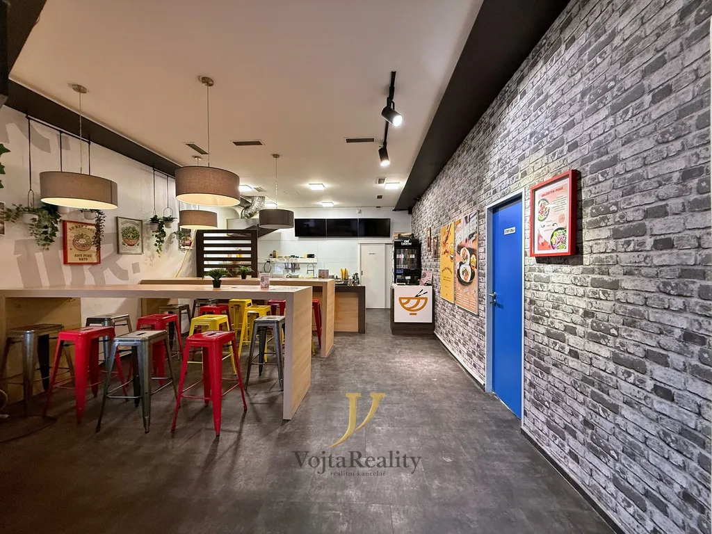 Prostory o rozloze 55m² do nynějška sloužily jako vyhledávaný podnik rychlého občerstvení, který měl strategicky výhodné místo v centru města. Nyní prostory nabízejí cca 15 míst k sezení, ale současný provozovatel si vybavení prostor odnese do nové provozovny. V letních měsících se nabízí možnost předzahrádky dalšími až 20 místy k sezení. Zachování stávajícího konceptu ovšem není podmínkou pronájmu. Prostor lze využít a přizpůsobit i pro jiné druhy podnikání.