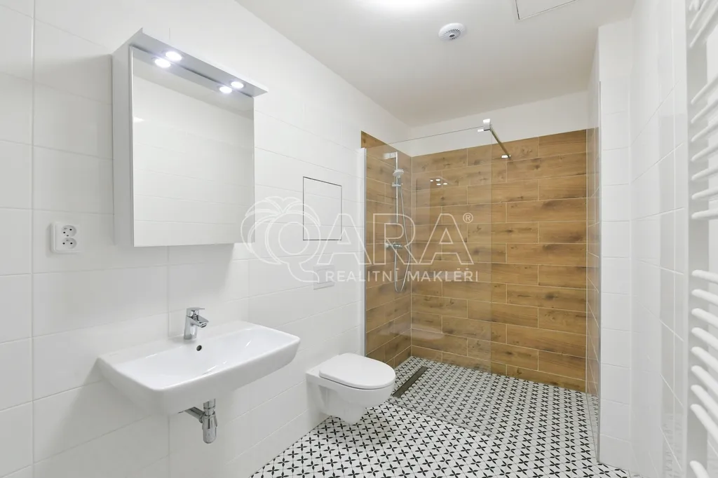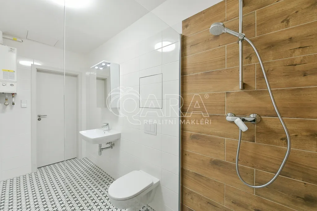 Byt je umístěn ve 2. NP novostavby bytového domu s výtahem z roku 2023 nacházejícím se v těsné blízkosti kolonády. Byt o celkové výměře 47 m² je dobře dispozičně řešen a sestává ze vstupní chodby, obývacího pokoje s kuchyňským koutem, ložnice, koupelny se sprchovým koutem a s WC. Orientace oken v celém bytě je na severozápad. Podlahy jsou v celém bytě plovoucí, v koupelně je dlažba. Vytápění a ohřev teplé vody zajišťuje vlastní plynový kotel umístěný v bytě. V objektu je možnost pronájmu parkovacího stání.