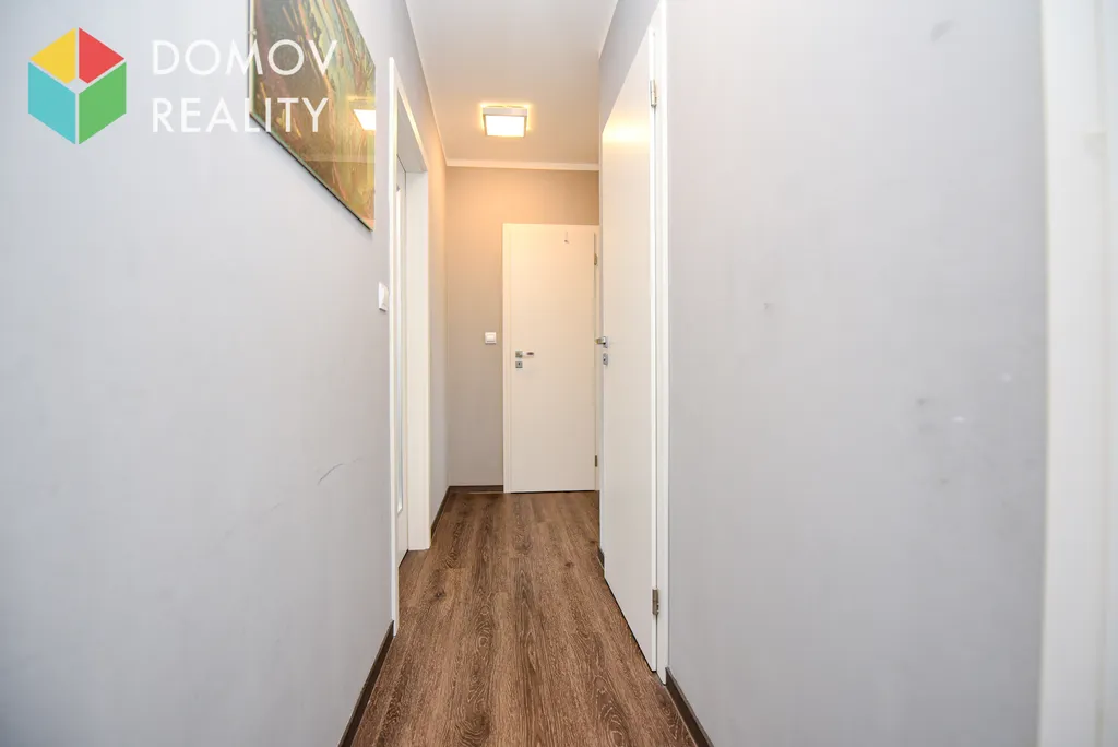 Dispozičně je byt řešen prakticky a vzdušně. Kuchyň s oknem je vybavena moderní kuchyňskou linkou se spotřebiči a plynule navazuje na prostorný obývací pokoj.