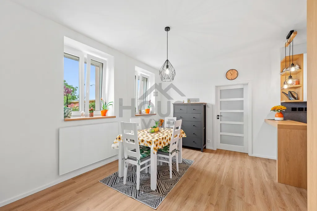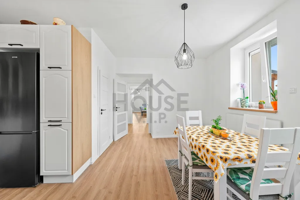 Byt o podlahové ploše 108 m² je situován v 1. nadzemním podlaží udržovaného domu. Dispozice zahrnuje tři samostatné pokoje, samostatnou kuchyni s jídelním koutem, koupelnu, komoru a dostatek úložných prostor. Kuchyň je vybavena moderní kuchyňskou linkou s vestavěnými spotřebiči značky Gorenje a tvoří praktické centrum celé domácnosti.