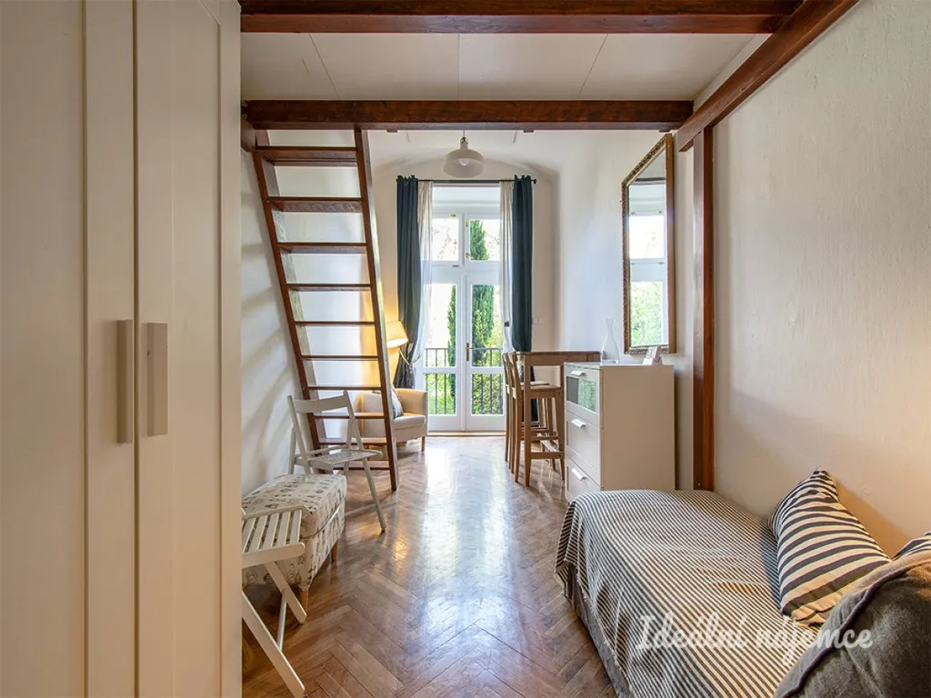 Byt se nabízí plně vybavený. Kuchyně disponuje lednicí, varnou deskou a mikrovlnnou troubou. Hlavní část je zařízena pohovkou, stolem, křeslem a komodou. Z hlavní části bytu je pěkný výhled do vnitrobloku. Postel je umístěna v patře bytu . V koupelně je sprchový kout, pračka a toaleta..