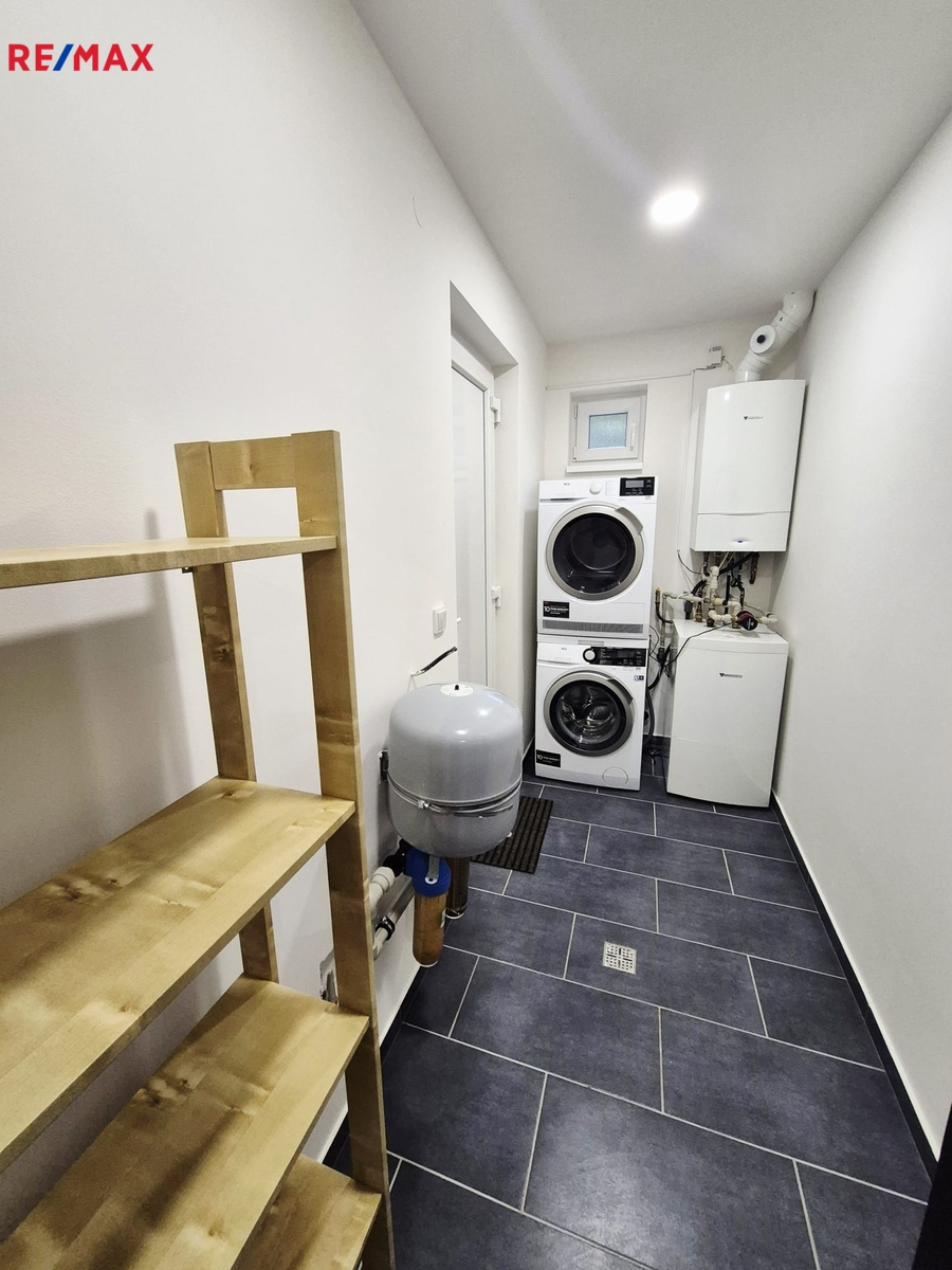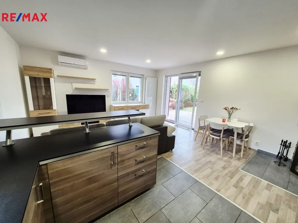 Obývací pokoj s kuchyňským koutem a dva další pokoje jsou vybaveny klimatizací. V pokojích jsou plovoucí podlahy, v ostatních místnostech dlažba. Všechna okna mají vnitřní i elektronicky ovládané venkovní žaluzie. Vytápění domu zajišťuje plynový kotel zn. Junkers. Dům je zabezpečen alarmem. Prostorná garáž nabízí kromě parkování také dostatek místa pro uskladnění dalších věcí. Velkou výhodou je přímé propojení domu s garáží, díky kterému se do interiéru dostanete „suchou nohou“. Převážně západní orientace zajišťuje dostatek denního světla v obytných prostorách a příjemné posezení na terase či zahradě. Na zahradě se nachází zahradní domek, její údržbu zajišťuje robotická sekačka. Energetický štítek v přípravě, do doby dodání proto uvádíme kategorii G.