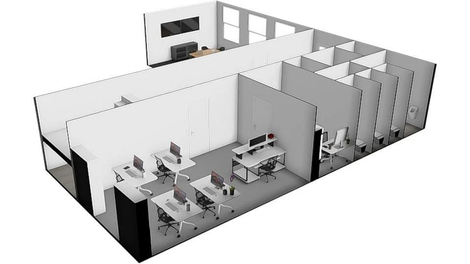 Jedná se o dvě samostatné kanceláře o velikosti cca 38 m² a cca 12 m², které se nachází v přízemí budovy. Větší místnost může sloužit jako hlavní kancelářský prostor a menší místnost jako zázemí pro další pracovní místo, archiv či sklad dokumentů. Obě místnosti jsou světlé. Hlavní kancelář je nově vybavena malou kuchyňskou linkou s dostatečným úložným prostorem a dřezem. Menší kancelář se nabízí bez vybavení. Na chodbě jsou společné prostory jako je WC nebo zasedací místnost, kterou si lze pronajmout za poplatek. Zasedací místnost je vybavena velkým stolem se židlemi, křesly, televizemi a dalším nábytkem včetně kuchyňské linky s dřezem a lednicí.
