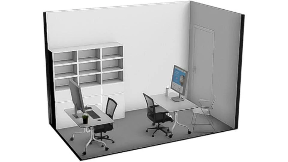 Nabízený prostor tvoří samostatná menší kancelář o velikosti cca 12 m², vhodná pro jedno až dvě pracovní místa. Místnost se nabízí bez vybavení. Kancelář disponuje oknem orientovaným do klidné části objektu. Na chodbě jsou společné prostory jako je WC nebo zasedací místnost, kterou si lze pronajmout za poplatek. Zasedací místnost je vybavena velkým stolem se židlemi, křesly, televizemi a dalším nábytkem včetně kuchyňské linky s dřezem a lednicí.