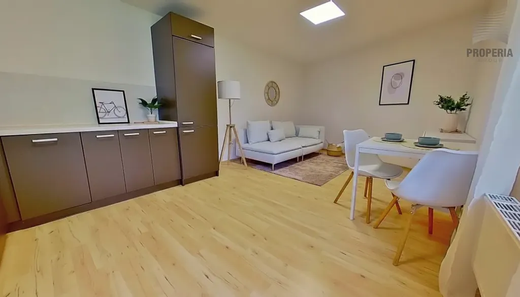 Hlavní obytný prostor s kuchyňskou částí je vzdušný a díky přímému vstupu na terasu nabízí výrazně vyšší komfort bydlení než běžné byty této kategorie. Terasa poskytuje dostatek prostoru pro venkovní posezení, grilování, zeleň i relax a je skutečnou přidanou hodnotou této nemovitosti.