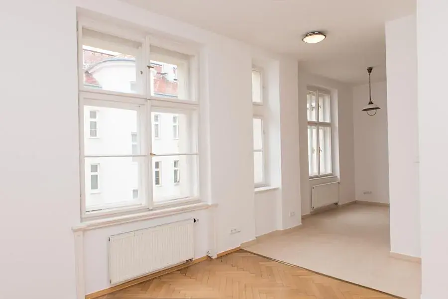 Prostorný rekonstruovaný nezařízený byt 2+kk (1 ložnice, 1 koupelna), o celkové rozloze 91 m2, je situovaný ve 3. patře reprezentativní budovy se zahradou a výtahem, v prestižní lokalitě na Vinohradech Praha 2, ulice Mánesova.