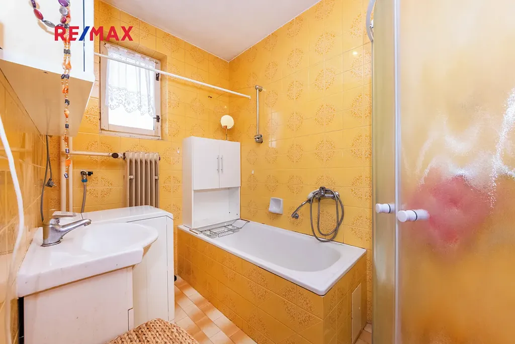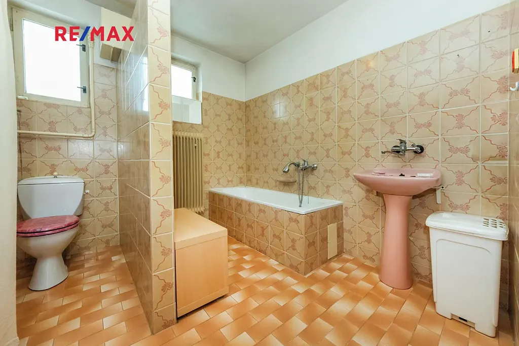 Přízemí (84 m2): veranda, centrální chodba se schodištěm, kuchyň, obývací pokoj, velký pokoj, komora, samostatné WC, koupelna s vanou i sprchovým koutem.