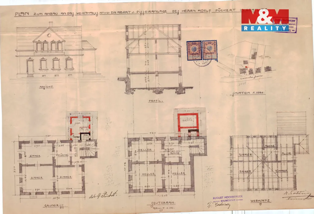 Nabízíme prostorný rodinný dům z roku 1910, který prošel částečnými úpravami a je připraven k okamžitému užívání. V přízemí se nachází obývací pokoj s krbem, dvě ložnice, kuchyň a menší koupelna. V patře je velký obývací pokoj s kuchyňskou linkou, jídelním koutem a krbem, dvě ložnice, z nichž jedna má vlastní koupelnu se sprchovým koutem. Prostorná půda a sklep nabízejí další možnosti využití.