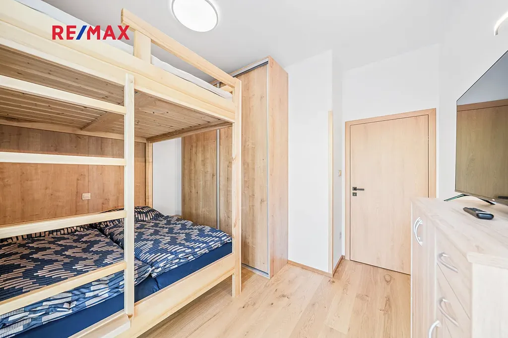 Dále je zde ložnice s palandou, koupelna se sprchovým koutem, toaleta a předsíň. Jelikož úložného místa není nikdy dost, tak k dispozici je také sklepní kóje, která poskytuje dostatek prostoru například pro uložení veškerého sportovního vybavení. Bezpečné parkování je zajištěno garážovým stáním v podzemních prostorách domu.