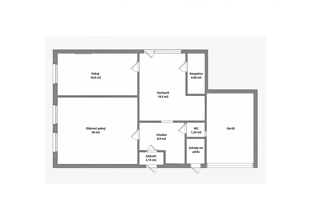 Vstup do domu je přes zádveří, odkud se dostanete do chodby. Ta propojuje obývací pokoj, samostatné WC a kuchyň s jídelnou.