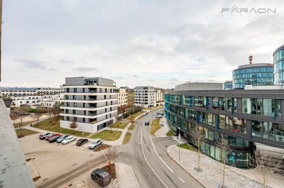 Pronájem slunného, prosvětleného a moderního bytu 1+kk (34m2) s terasou, sklepem, parkováním v 5.patře prestižní nízkoenergetické (A) bytové rezidenci Waltrovka s nízkými provozními náklady, umístěné na Praze 5, v pěší dostupnosti stanice metra Jinonice (linka B).