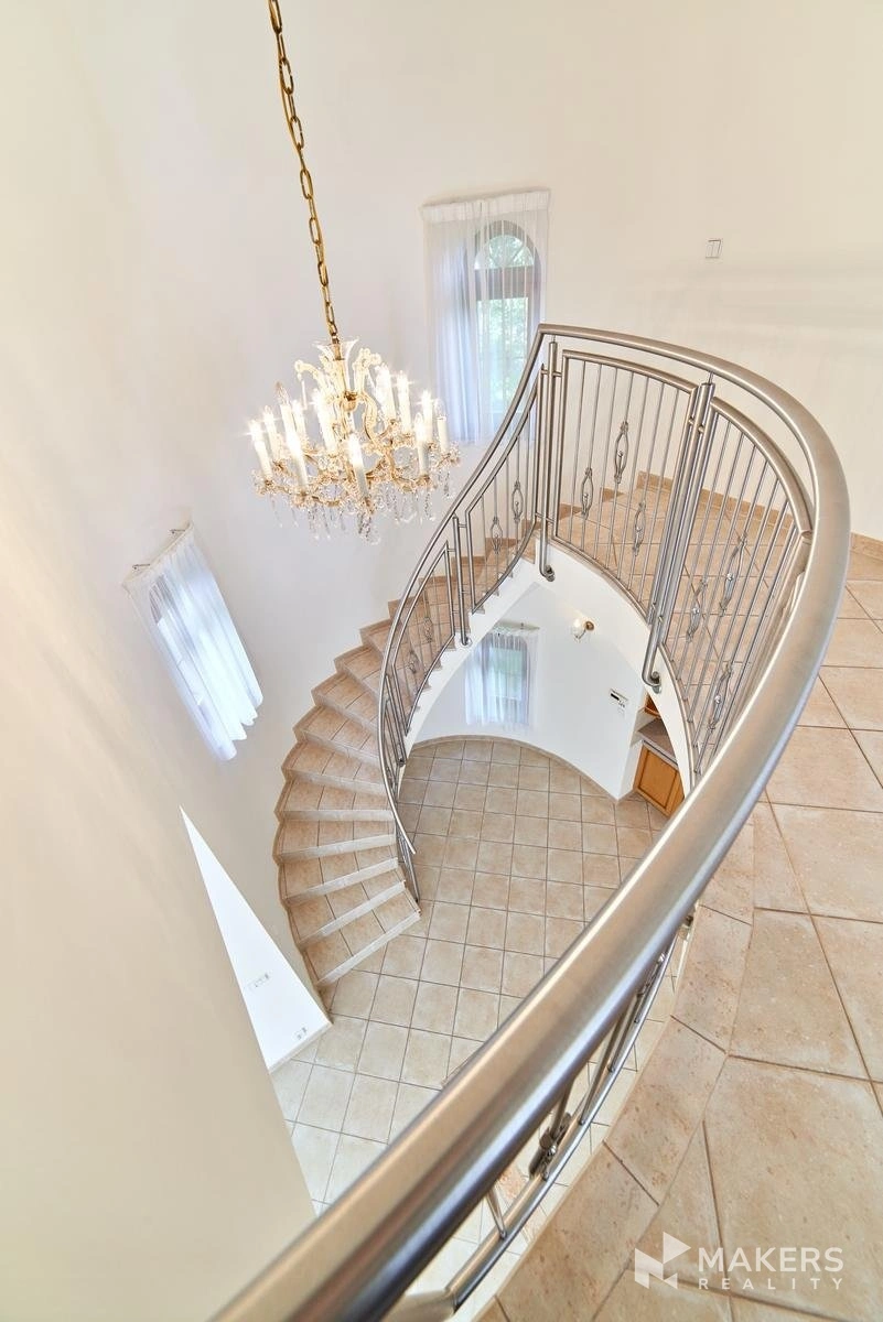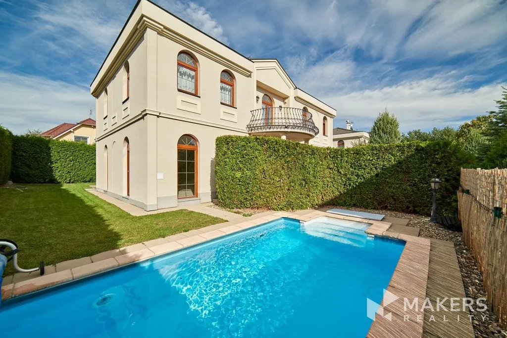 Stylová samostatně stojící vila se nachází v prestižním uzavřeném areálu v pražských Nebušicích. Nabízí obytnou plochu 243 m², dvojgaráž a terasu o rozloze 12 m². K vile náleží soukromá zahrada, jejíž součástí je vyhřívaný bazén o rozměrech 5 x 3,1 x 1,5 m.