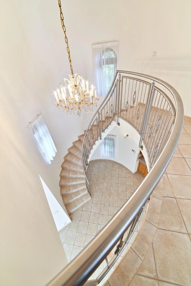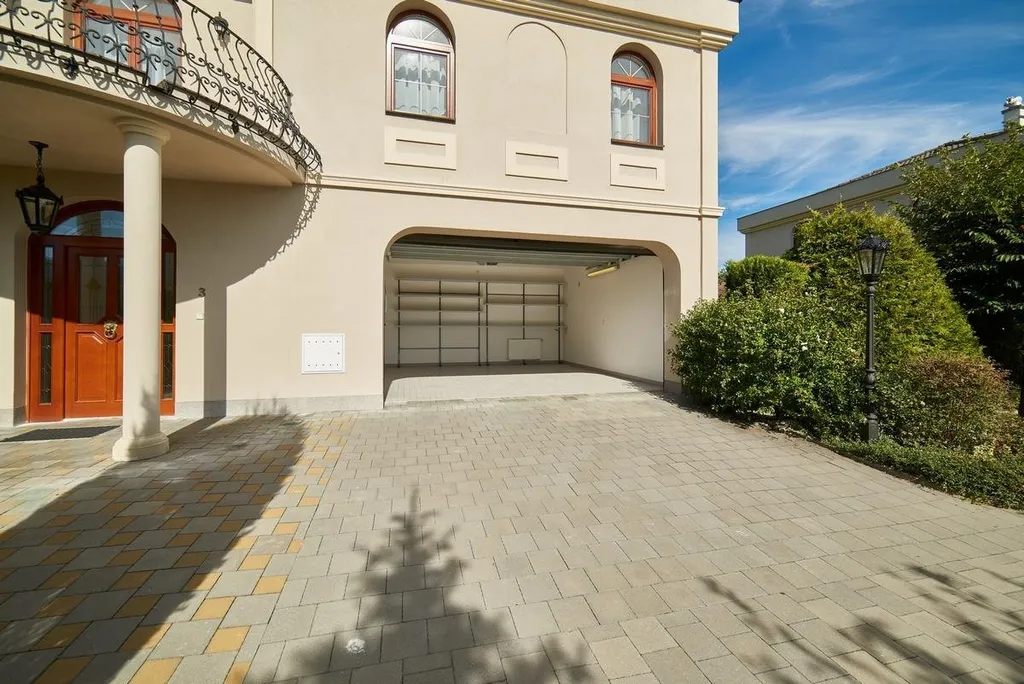 Stylová samostatně stojící vila se nachází v prestižním uzavřeném areálu v pražských Nebušicích. Nabízí obytnou plochu 243 m², dvojgaráž a terasu o rozloze 12 m². K vile náleží soukromá zahrada, jejíž součástí je vyhřívaný bazén o rozměrech 5 x 3,1 x 1,5 m.