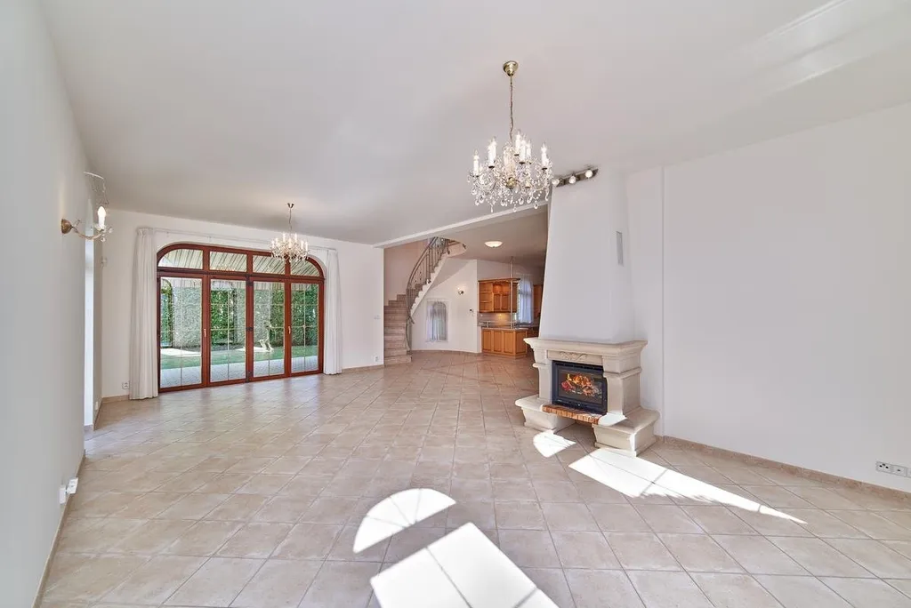 Plně zařízená kuchyně je vybavena sklokeramickou varnou deskou, horkovzdušnou troubou, myčkou, lednicí s mrazákem a digestoří. Otevřený koncept propojuje kuchyň s prostorným obývacím pokojem, jehož dominantou je krb a přímý vstup na zahradu.