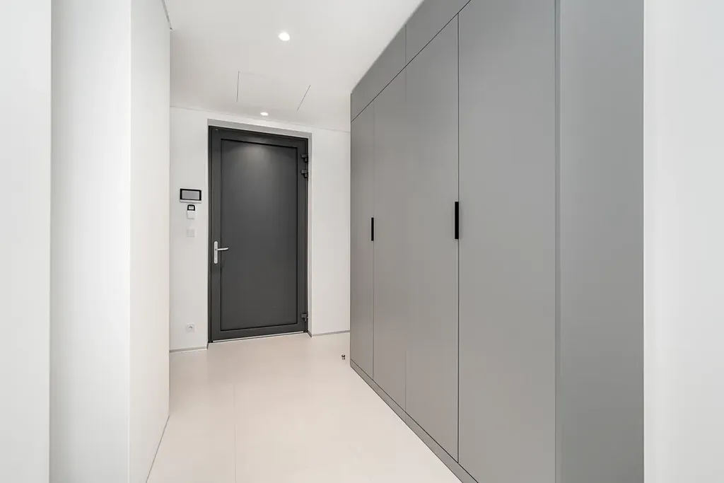 Interiér bytu odpovídá vysokému standardu celého projektu. Velkoformátová hliníková okna s izolačními trojskly přivádějí do interiéru dostatek denního světla a podtrhují vzdušnost prostoru. Standard zahrnuje třívrstvé dřevěné podlahy, koupelny s obklady a sanitárními prvky značky Porcelanosa a zvýšené stropy s integrovaným nepřímým LED osvětlením.