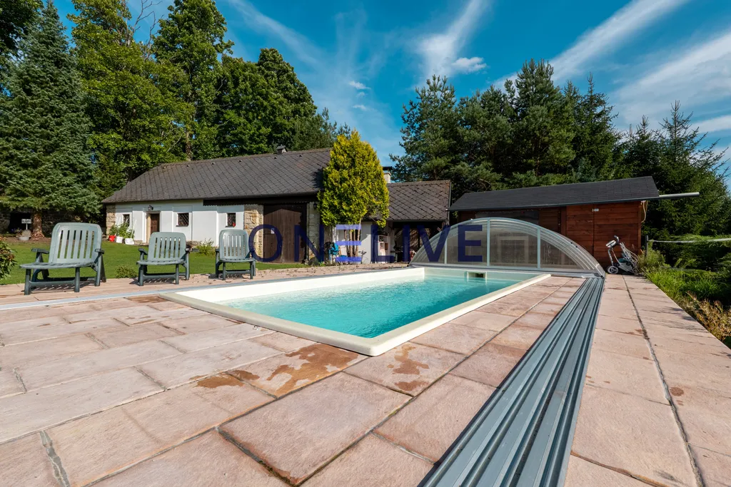 Nabízíme k prodeji unikátní areál bývalé fary z roku 1797 po rozsáhlé rekonstrukci, který se proměnil ve venkovskou rezidenci. Nemovitost se nachází na okraji obce v přírodě Českého lesa, jen pár kilometrů od hranic s Německem.