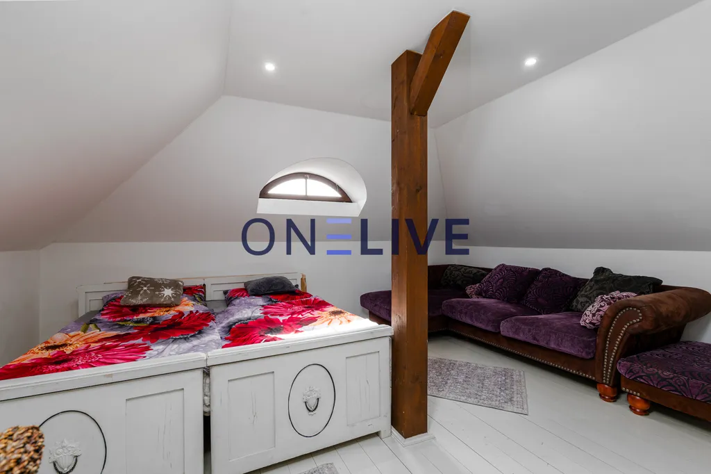 renovované dřevěné podlahy, nová okna (trojskla), kompletní renovace dřevěných trámů, koupelen i zázemí