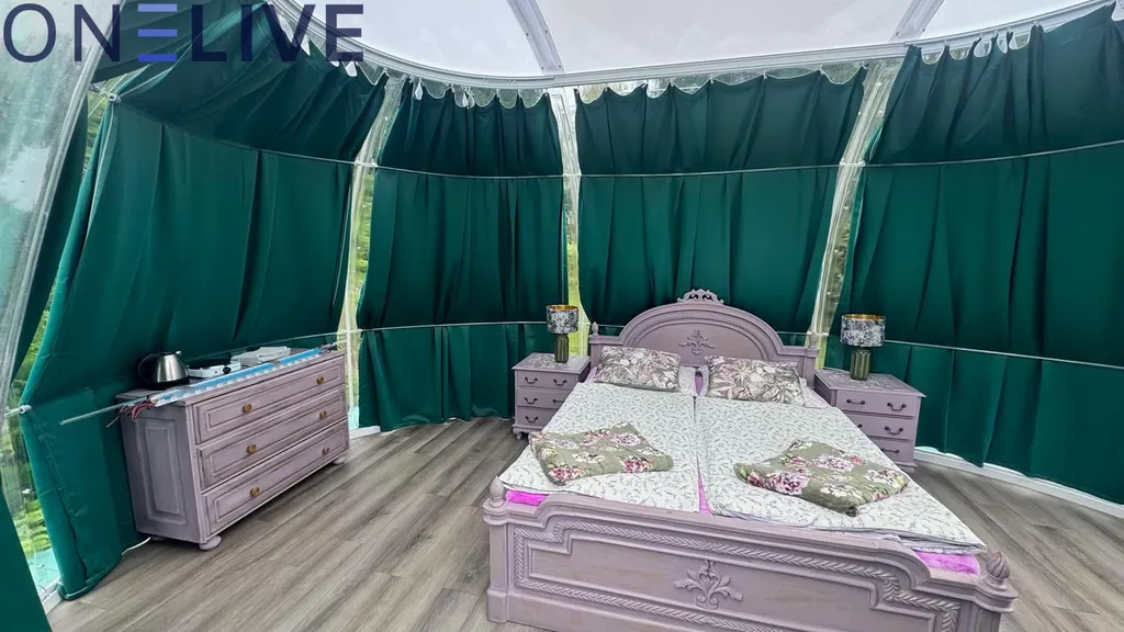 V areálu se nachází plně vybavená glampingová kopule vhodná pro romantické přespávání, pro děti nebo návštěvu nebo i jako zdroj přivýdělku.