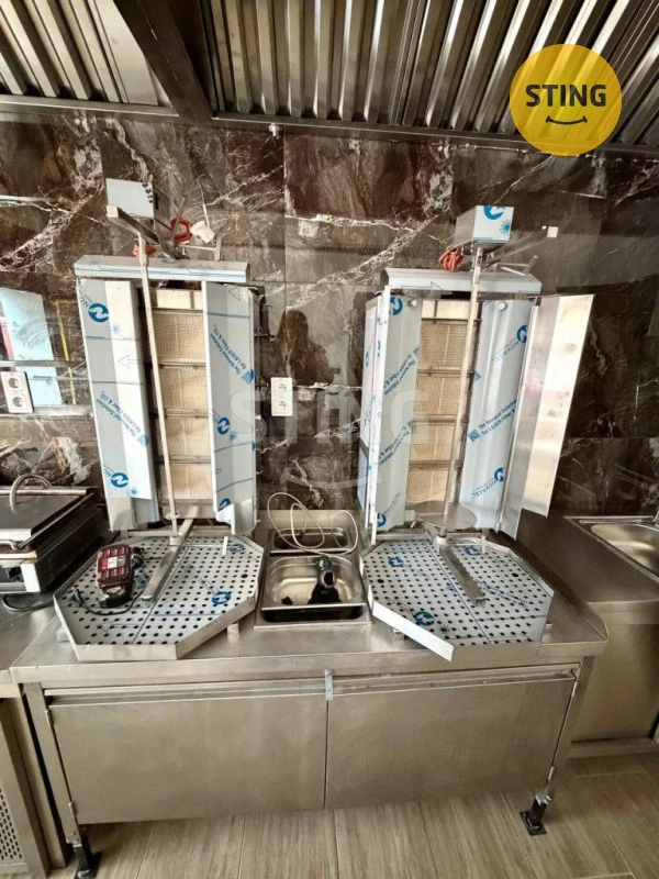 Equipment (included in the buyout): 2x grills, fryer, refrigerator, toaster, bain-marie (water bath), 2x freezers.