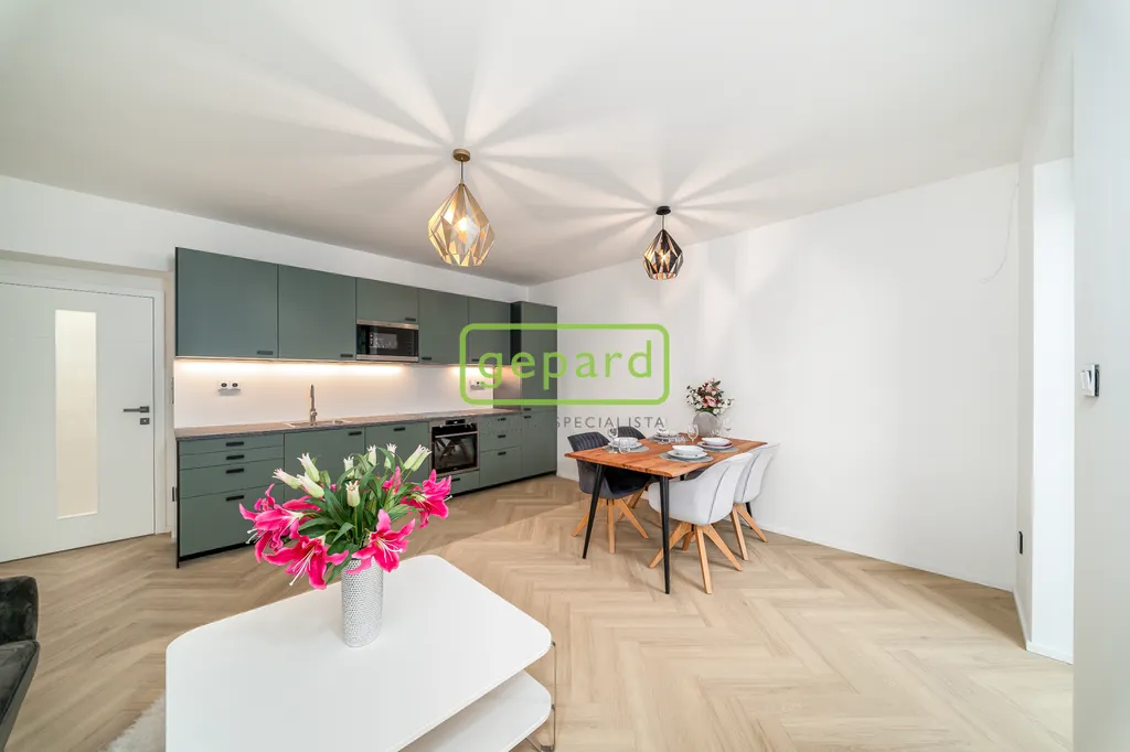 V celém bytě najdete mnoho nadstandardních prvků, jako je např. klimatizace a podlahové vytápění, což zaručuje spolu s tepelným čerpadlem velmi nízké náklady na provoz bytu. V koupelně se nachází místo pro pračku i sušičku, závěsné WC, vana a sprchový kout. Obě ložnice a předsíň pak nabízejí celou stěnu pro případné vložení vestavěné skříně pro maximalizaci úložného prostoru.