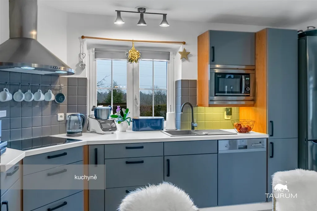 Kuchyňská linka je z roku 2022 a v roce 2025 byla vybavena kvalitními moderními spotřebiči indukční varná deska značky Electrolux, horkovzdušná trouba Gorenje, MW trouba Sharp, myčka AEG, lednice s mrazákem LG. Interiér je kromě kuchyňské linky vybaven novým nábytkem z masivu vše zakázková výroba.