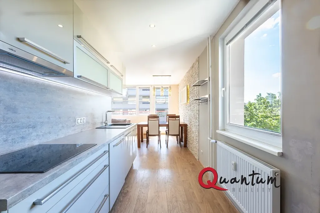 Nabízíme k dlouhodobému pronájmu pěkný a velmi dobře dispozičně řešený byt 3+kk s lodžií o celkové ploše 76 m2, z toho lodžie 7 m2 a sklep 1 m2, v 5. patře panelového domu v atraktivní a výborně dostupné lokalitě.