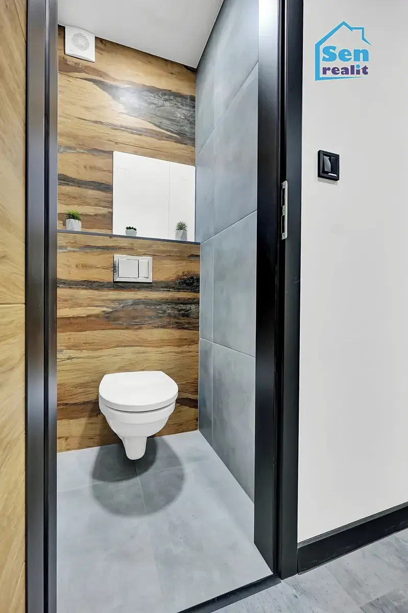 Nabízíme k pronájmu družstevní byt 1+1 v Karviné na ulici Školská o celkové výměře 38 m2 s lodžii. Byt je po kompletní rekonstrukci a nabídne Vám moderní kuchyňskou linku, která má vestavěné spotřebiče jako elektrickou troubu, mikrovlnou troubu, myčku, indukční varnou desku, digestoř a podsvícení. Součásti obývacího pokoje je na míru vyrobený tv stolek. V koupelně naleznete nové obklady, dlažbu, zrcadlo, skříňku pod umyvadlem a moderní vanu. Zasklená lodžie Vám nabídne příjemný relax za každého počasí. K bytu také náleží sklepní koje. Rekonstrukce zahrnuje zděné jádro, nové elektrické rozvody v celém bytě, moderní vypínače a zásuvky, sádrové omítky, plovoucí podlahy, moderní světla v každé místnosti, v celém bytě nové obložky a dveře. Protipožární vstupní dveře. Byt se nachází ve vyvýšeném přízemí. Dům prošel kompletní revitalizaci: plastová okna, nové vchodové dveře, zateplení, izolace kolem domu a nová střecha. V blízkosti je veškerá občanská vybavenost. Doporučujeme osobní prohlídku.