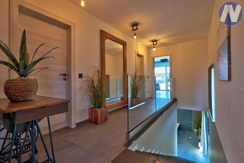 Dům byl postaven v roce 2025, rozkládá se na dvou podlažích a nabízí celkovou obytnou plochu 200 m². Má čtyři prostorné ložnice, čtyři moderní koupelny, otevřenou kuchyň s jídelním a obývacím prostorem, prádelnu a také vlastní wellness centrum se saunou a vířivkou. Nemovitost je plně zařízena kvalitním designovým nábytkem a je připravena k okamžitému použití.