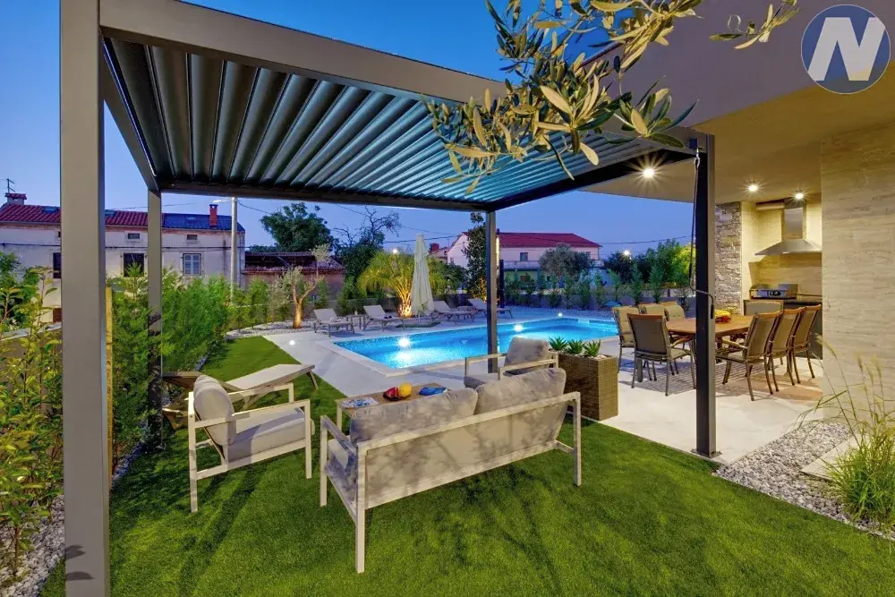 Nově postavená, moderní rodinná vila, která se nachází v klidné vesnici Marčana, ve východní Istrii, jen 4 km od moře a nedotčené přírodní pláže známé svou křišťálově čistou vodou a uvolněnou atmosférou, daleko od masové turistiky.