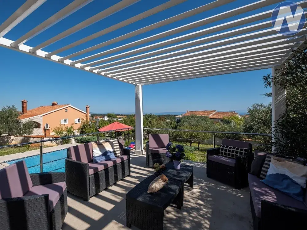 V exkluzivním zastoupení nabízíme vilu stojící ve středomořské zahradě v klidné oblasti. Jakmile vstoupíte do nádvoří vily, začnete Istrii intenzivně vnímat a cítit ve středomořské zahradě plné vůní levandule a rozmarýnu, která vytváří atmosféru naprostého klidu. Výhled na bazén Vás vybízí k relaxaci, zatímco pergola s letní kuchyní poskytuje ideální prostor pro rodinné sešlosti za teplých večerů.