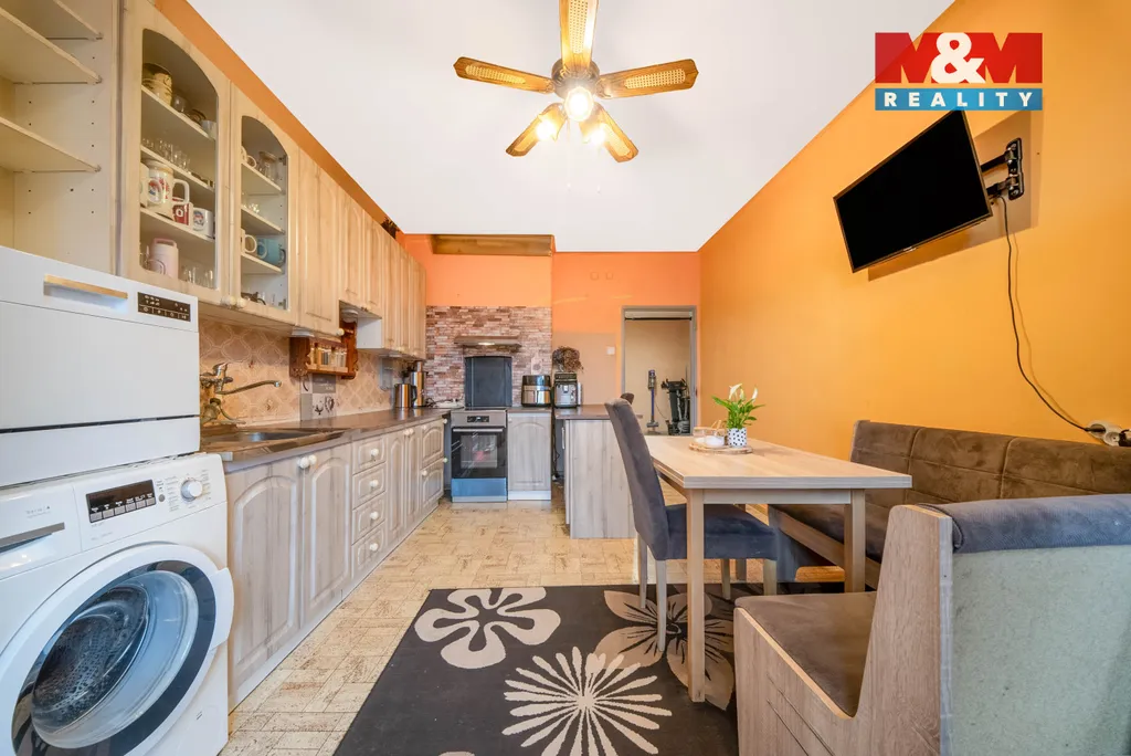Dispozici tvoří dětský pokoj (16,5 m²), ložnice (19,9 m²), kuchyň s jídelním koutem (15,8 m²) a spíží (0,7 m²), prostorná chodba (18,3 m²), koupelna (3 m²), samostatné WC (1,3 m²) a komora (2,9 m²). K bytu náleží také sklep.