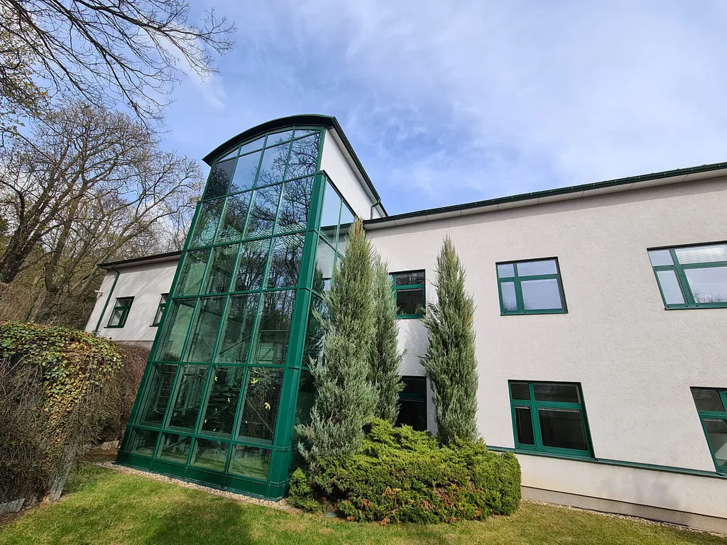Pronajmeme krásnou kancelář vybavenou kvalitním kancelářským nábytkem šedé barvy německé výroby, nové koberce, nové vymalováno v administrativní budově obklopené krásnou zahradou v klidné lokalitě plné zeleně. V rámci pronájmu vybavená kuchyňka, jídelna, toalety, posezení v hale budovy. Budova se nachází v oploceném areálu sousedícím s lesoparkem. Krásné místo v klidné části, k využití venkovní altánek k posezení. Budova má obdélníkový půdorys s prosklenou přístavbou, celý areál je nekuřácký(kuřárna na hranici pozemku). Doprava městskou hromadnou dopravou linka č. 151 nebo metrem Vysočanská nebo Prosek. Možnost parkování přímo v areálu (960Kč bez DPH/měsíc) nebo před budovou na modrých městských zónách. V rámci pronájmu je možné využít zasedací místnost o velikosti 28m² pro 14 sedících lidí s projekcí + rolety- úplné zatemnění. Cena pronájmu je 390 Kč/m² + podíl na společných prostorách + služby, energie. Objekt je napojen na security službu, odvoz odpadu, zahradník se stará o zeleň, uklízečka jednou týdně, internet.