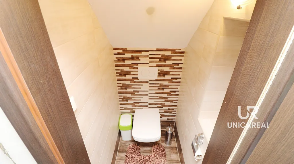 Ložnice s orientací na východ má 17,5 m². V chodbě 12,5 m² k využití šatní skríň na míru, odkládací úložné prostory a mrazák. Zděná koupelna o velikosti 6,5 m² je vybavena umyvadlem , pračkou, úložnými skříňkami, rohovou vanou i sprchovým koutem. Samostatné WC. Neopomenutelný bonus je i prostorná spíž.