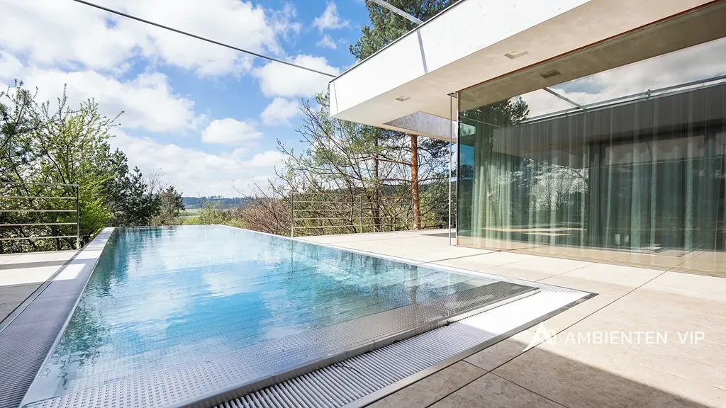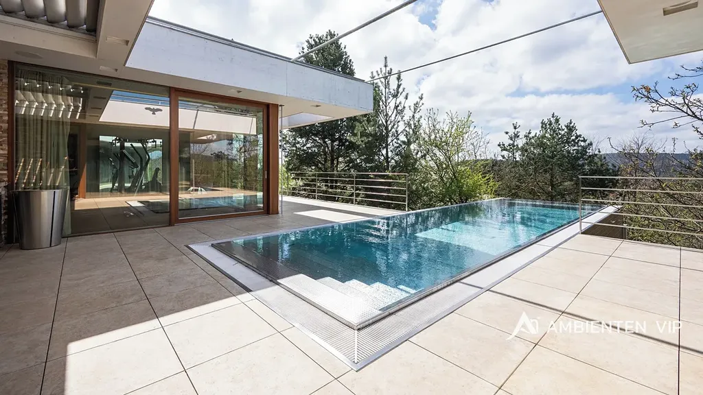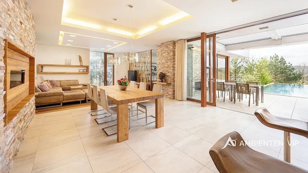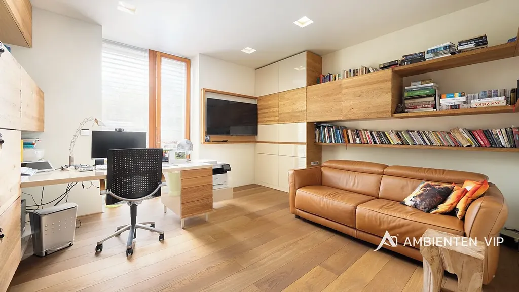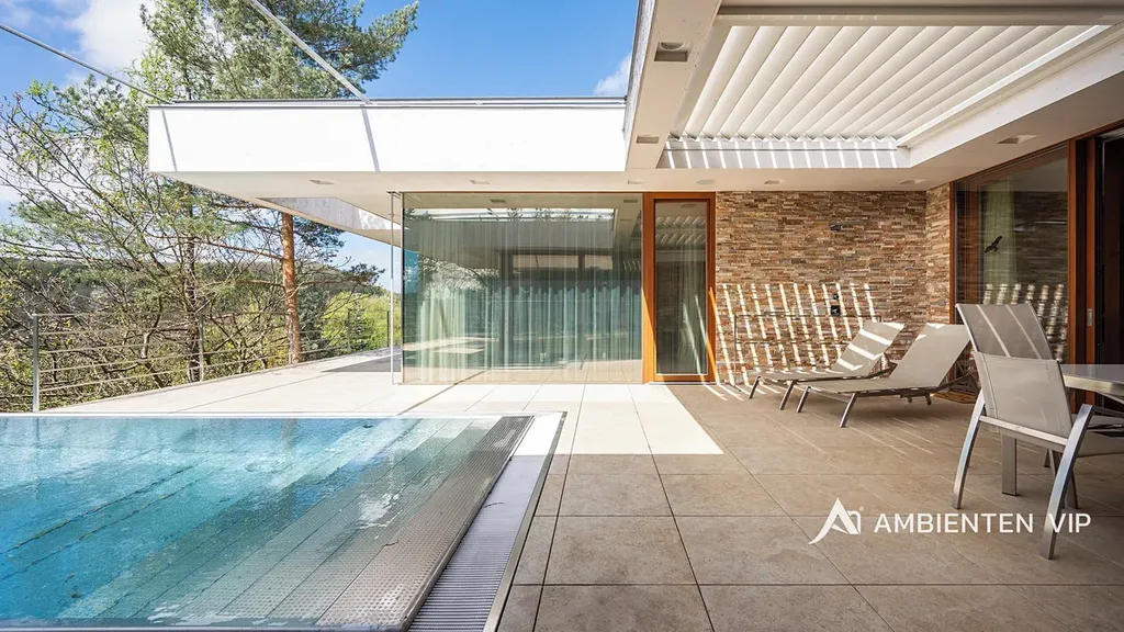 AMBIENTEN VIP si vám dovoluje výhradně nabídnout k prodeji luxusní samostatně stojící vilu v obci Lelekovice severně od Brna. Nemovitost je v perfektním technickém stavu bez nutnosti investic. Jedná se o atypický prodej nemovitosti, kdy majitelé nemovitosti prodávají vilu s pozemky, avšak za podmínky možnosti vilu užívat po dobu dalších dvaceti let. Nemovitost je určena klientům, kteří hledají vhodnou investiční příležitost uložení svých prostředků do této výjimečné nemovitosti, která je umístěna na kopci s výhledy. Nachází se uprostřed zeleně a přitom 10 min. jízdy k obchodnímu centru Globus. Majitelé garantují, že po dobu dalších dvaceti let budou provádět její údržbu, hradit veškeré energie a starat se o vilu tak, aby zůstala i nadále v perfektním technickém stavu do jejího finálního předání kupujícím. Lhůta dvaceti let není lhůtou finální, v časovém horizontu může být i kratší, je vázána na dožití majitelů v této vile. Předem uvádíme, že se nejedná o standardní prodej nemovitosti s možností okamžitého předání budoucím kupujícím po přepisu na katastru. Předání domu bude vázáno na dožití majitelů v tomto domě. Celková výměra pozemku činí 2.118 m2, podlahová plocha obytná má výměru 387,66 m2. Dům je naprosto výjimečný svým provedením a technickým stavem. Jeho poloha je vhodná pro klienty, kteří preferují klidnou lokalitu přímo u lesa a k tomu nádherné výhledy. Nemovitost je napojena na veřejný vodovod, kanalizaci a příjezd k ní je po asfaltové komunikaci. Zastávka autobusu je 700 m, vlaku 2 km, nájezd na rychlostní komunikaci Brno – Svitavy 2,5 km. Nemovitost je z roku 2013 a je provedena velice nadstandardně. Energetická třída vily je B. V suterénu vily se nachází společenská místnost, toaleta a technická místnost. V 1 NP dvojgaráž, přístřešek pro další vůz, dřevěný sklad, zádveří, vstupní chodba, koupelna s toaletou, pracovna, obývací pokoj s jídelnou a kuchyňským koutem, spíž, terasa s krbem a nerezovým bazénem o délce 12 m, technická místnost, toaleta a dvě ložnice a dále luxusní koupelna a šatny. K dispozici je projekt skutečného provedení, který souhlasí s faktickým stavem vily. Tvar nemovitosti je H. Stavba je zděná z keramických tvárnic tloušťka stěn 45 cm a obložena kamenným a dřevěným obkladem. Stropy jsou monolitické, střecha je plochá, střešní krytina je PVC fólie, okna jsou dřevěná Euro okna s izolačními dvojskly s venkovními žaluziemi, dveře jsou dřevěné masivní, podlahy jsou dřevěné a dále jsou zde dlažby s epoxidovou stěrkou. Topení je ústřední podlahové. Tepelné čerpadlo je země – voda. Jsou zde 3 vrty hl. 80 m, chlazené stropy, v obývacím pokoji krb. Dále je zde úpravna vody. Ve vile jsou celkem 4 umyvadla, 2 sprchové kouty, vana, tři toalety a dva bidety, centrální vysavač, EZS a EKS a systém chytré domácnosti. FVE 9,9 kWp s bateriovým úložištěm. V případě dalších upřesnění k vile a způsobu prodeje se na nás s důvěrou obraťte.