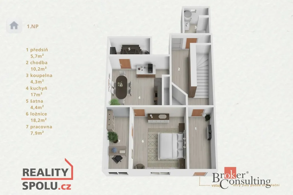 Dům nabízí výjimečnou kombinaci: tradiční stavbu z meziválečného období, dvě plnohodnotná patra, půdu s potenciálem vestavby a garáž na vlastním pozemku. Pokud hledáte nemovitost, kde se dá vytvořit moderní bydlení s dlouhodobou hodnotou, tohle je velmi zajímavá příležitost.