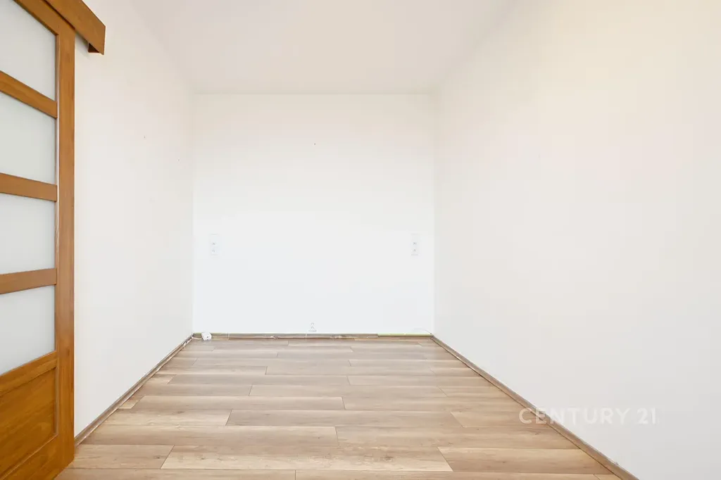 Byt se nachází v devátém nadzemním podlaží panelového domu. Disponuje vstupní chodbou, odkud se vchází do prostorné koupelny se sprchovým koutem, WC a umyvadlem. Z chodby se dostaneme dále do obývacího pokoje s kuchyňskou linkou. Ta je vybavena vestavěnou lednicí, myčkou, troubou, sklokeramickou deskou a digestoří. Je odsud vstup na lodžii. Vedle této místnosti se nachází samostatný pokoj. Na chodbě jsou vestavěné skříně.