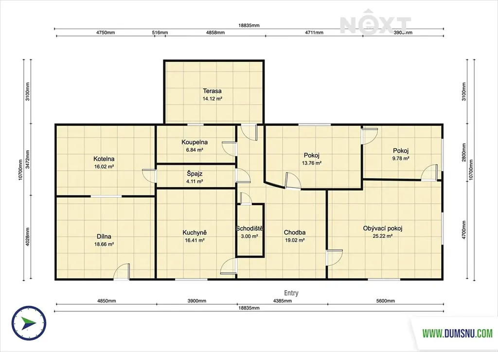 Dispozice domu je 3+1 v přízemí. V horním patře je možnost dokončení dalšího pokoje se vstupem na půdu.