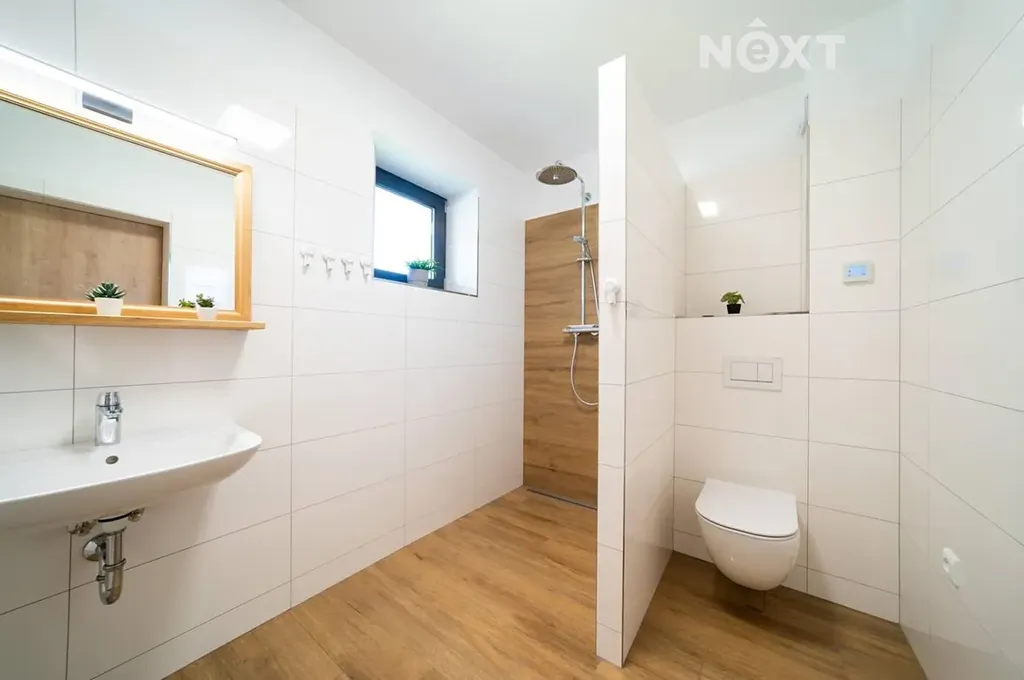 Půda nabízí praktický úložný prostor, sklep má technické zázemí včetně fotovoltaiky a bojleru pro oba apartmány. Sklep kombinuje industriální vzhled s betonovou podlahou, ideální pro další využití.