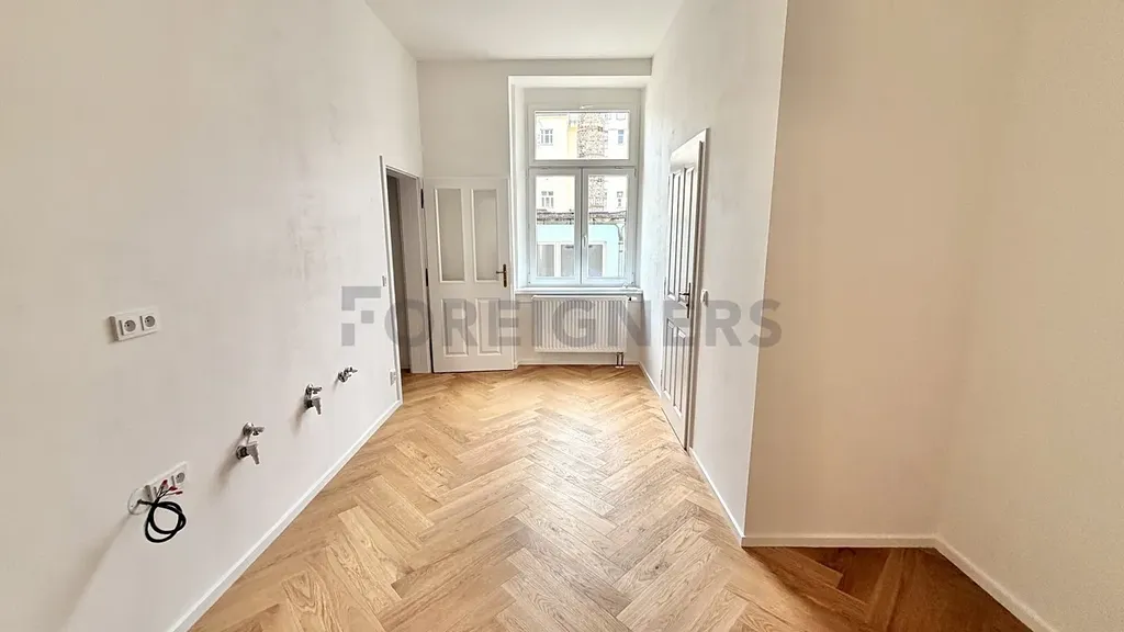 Interiéru dominují kvalitní dřevěné podlahy a nová, promyšleně řešená kuchyňská linka značky Hanák, která citlivě ladí s celkovým stylem bytu. Byt bude kompletně zařízený, takže nabízí možnost okamžitého a pohodlného nastěhování bez nutnosti dalších investic. Z ložnice se navíc otevírá přímý výhled na Žižkovskou věž.