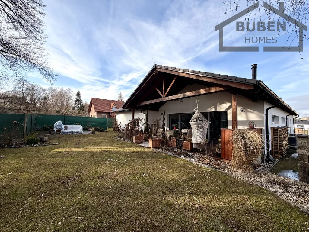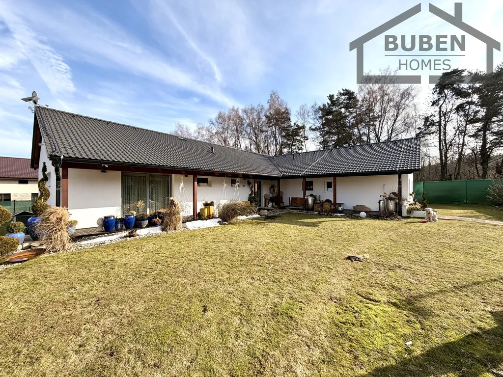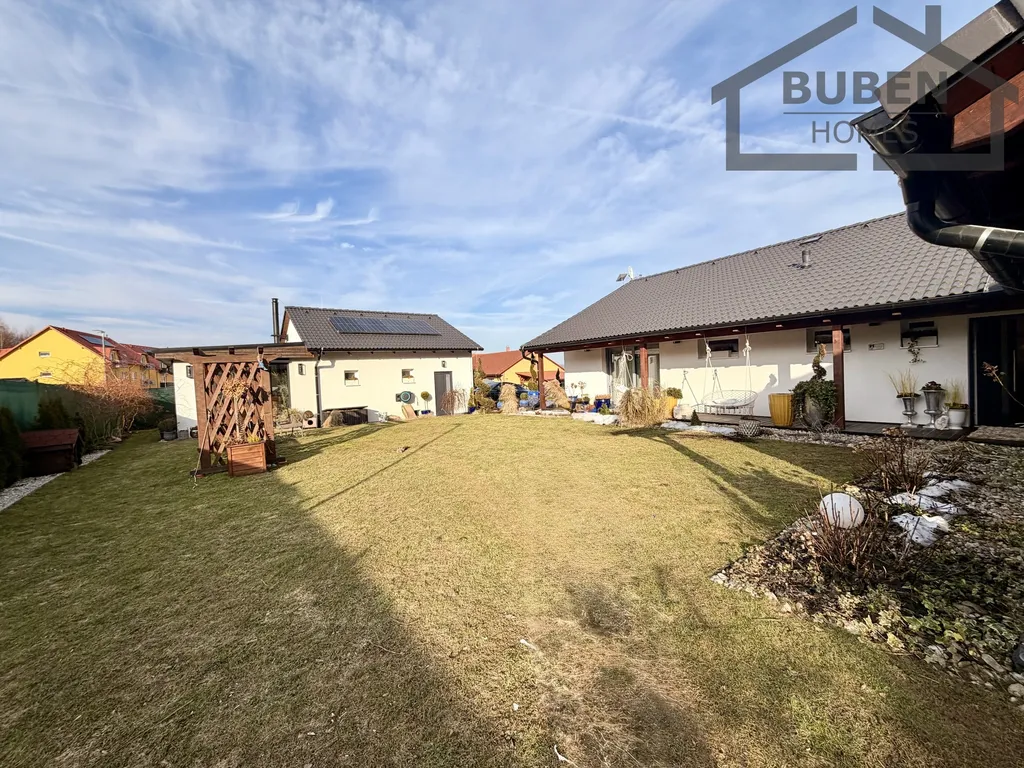 Předmětem prodeje je moderní, energeticky úsporný bungalov o užitné ploše domu 217 m² + 27 m² terasa a zastřešení vstupu). Celková výměra pozemků činí 1059 m². Z toho zastavěná plocha je o výměře 354 m² (dům 298 m², dvougaráž 56 m² + wellness), zahrada je o výměře 705 m².