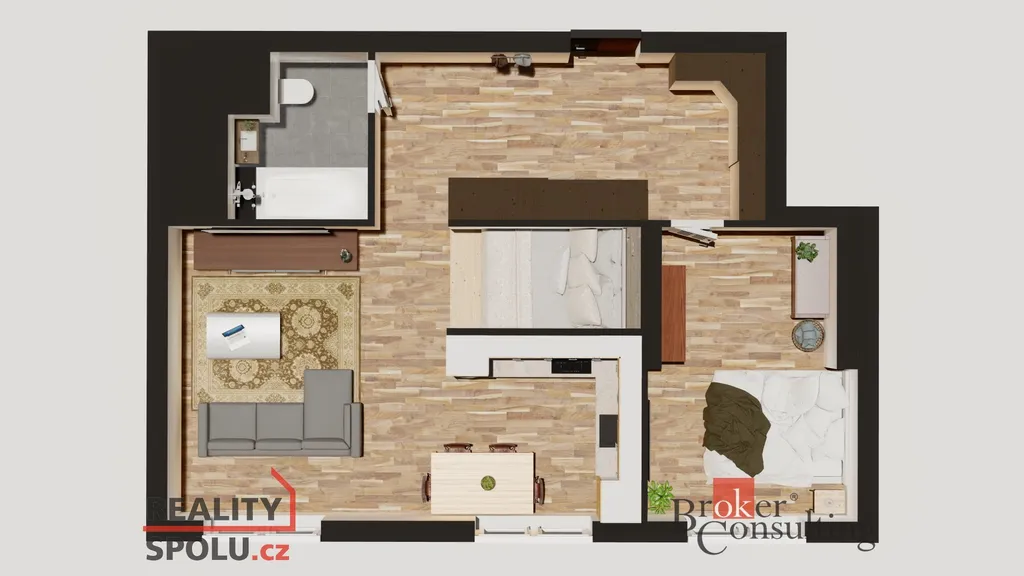 Dispozice bytu nabízí komfortní bydlení s dostatkem prostoru a světla. Okna orientovaná do parku poskytují nejen hezký výhled, ale i klid od ruchu města. Byt je ideální jak pro vlastní bydlení, tak i jako investiční příležitost.