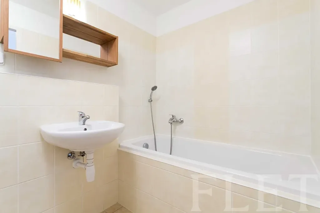 Samostatná ložnice nabízí klid a dostatek prostoru pro plnohodnotné spaní i úložné řešení. Koupelna je vybavena vanou, což ocení zejména rodiny nebo ti, kteří dávají přednost pohodlí před sprchovým koutem.